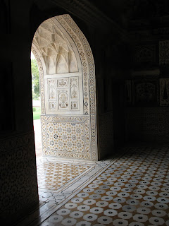 Today I woke up at dawn to see the Taj Mahal in the glow of the rising sun. There were much fewer people at that hour, but I still waited in a long line to be paded down by a tough Indian woman in a uniform before entering the taj. The taj really is a stunning, epic piece of architecture--a enormous display of love from Shah Jahan to his dead wife. The tourist craziness doesn't totally ruin the experience of the place, but it is comical to watch everyone line up to have their picture taken in the exact same spots in front of the taj, myself included. We are totally ridiculous lemmings, all of us; I'm not sure that we really cared that we were actually at a place, experiencing it--it was all about having that photographic proof--I was here, see. See that I was here?
